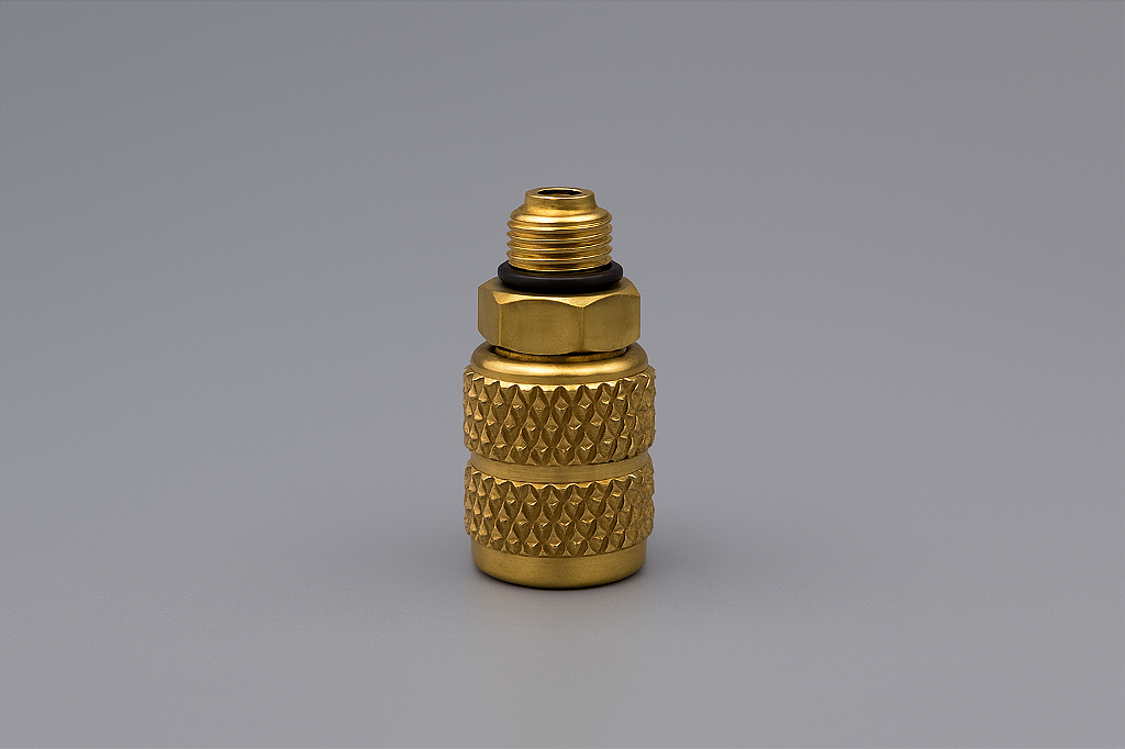 01 SAIDA ZL 1/4 FEMEA(ROSCA INTERNA) COM ACIONADOR DE SCHRADER E ROSCA 1/2 MACHO COM ORING DUPLO PARA VEDAÇAO.